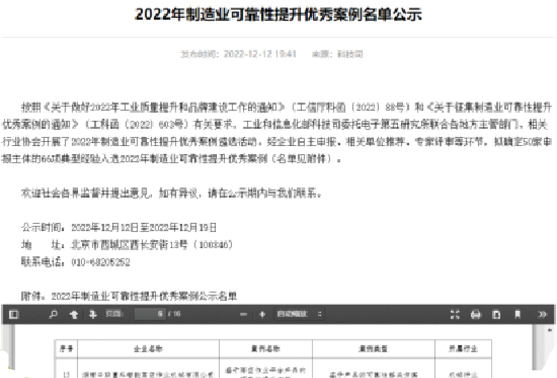 賦能行業(yè)高質(zhì)量發(fā)展,積極推進(jìn)數(shù)字化、智能化、綠色化轉(zhuǎn)型,“基于高空作業(yè)平臺(tái)產(chǎn)品的可靠性提升方案〞成功入選工信部2022年制造業(yè)可靠性提升優(yōu)秀案例。