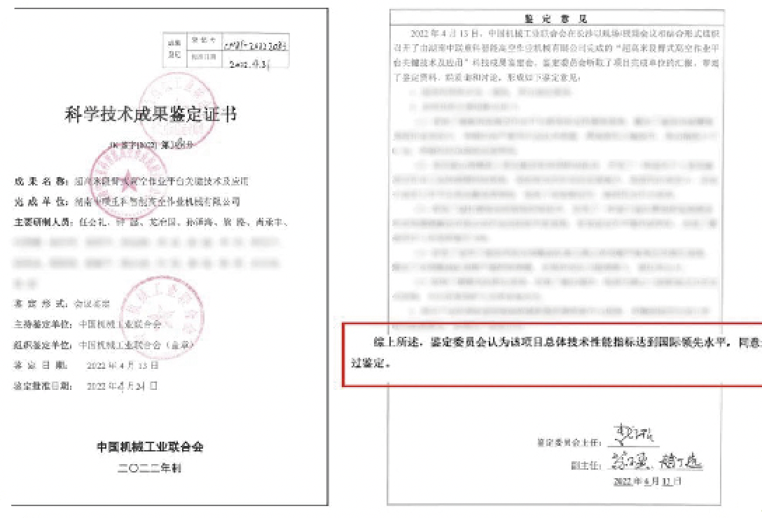 創(chuàng)新成果領(lǐng)跑全球,“超高米段臂式高空作業(yè)平臺(tái)關(guān)鍵技術(shù)及應(yīng)用〞通過科技成果鑒定。